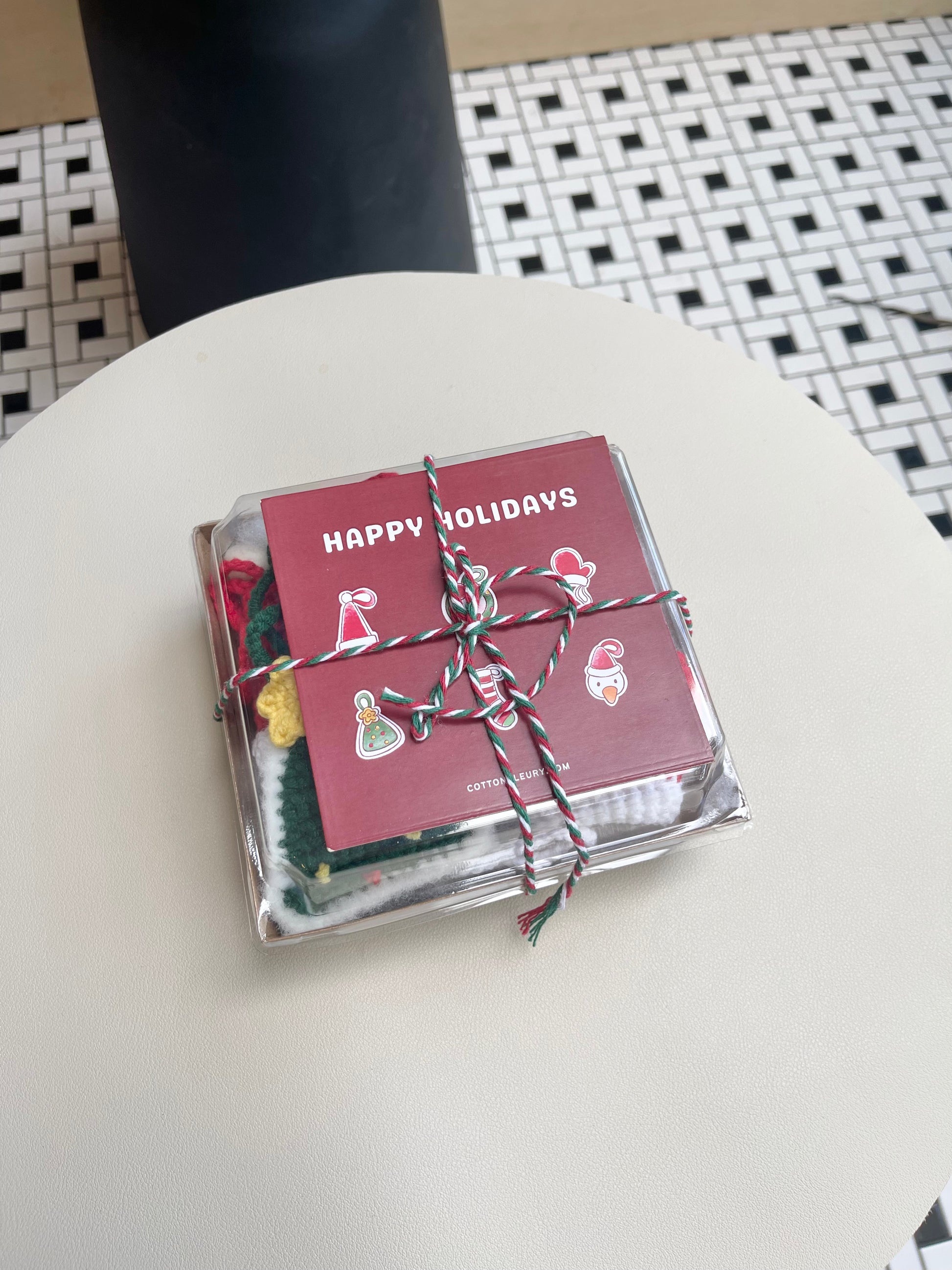 Looking to refresh your holiday decor? This charming set of six crocheted ornaments will add a unique touch to your Christmas tree! Carefully wrapped for gifting, it includes a mini Christmas tree, cozy hat, mitten, sock, snowman, and a cute mochi donut. These handcrafted ornaments bring a playful, cozy vibe to your holiday celebration!
