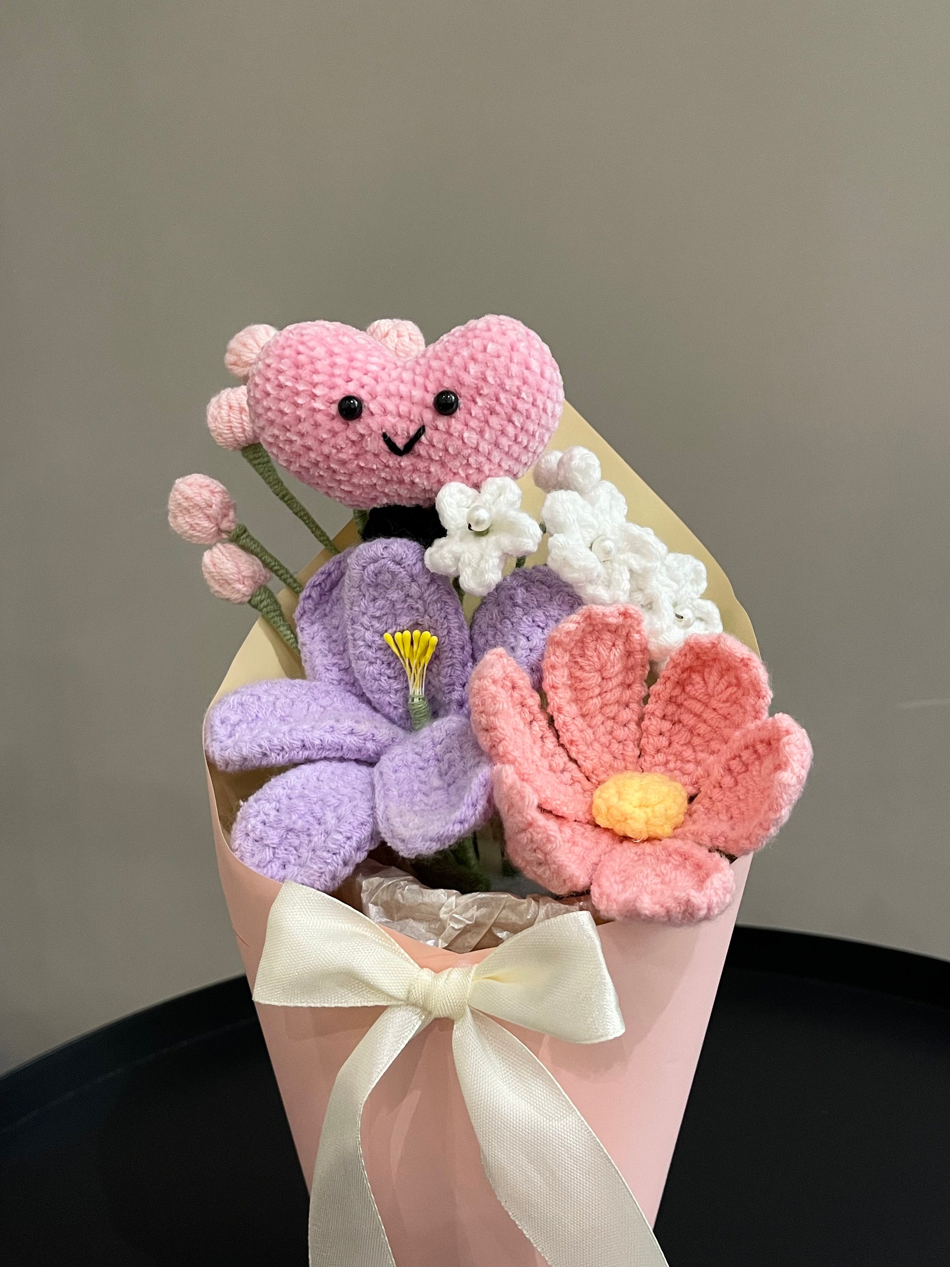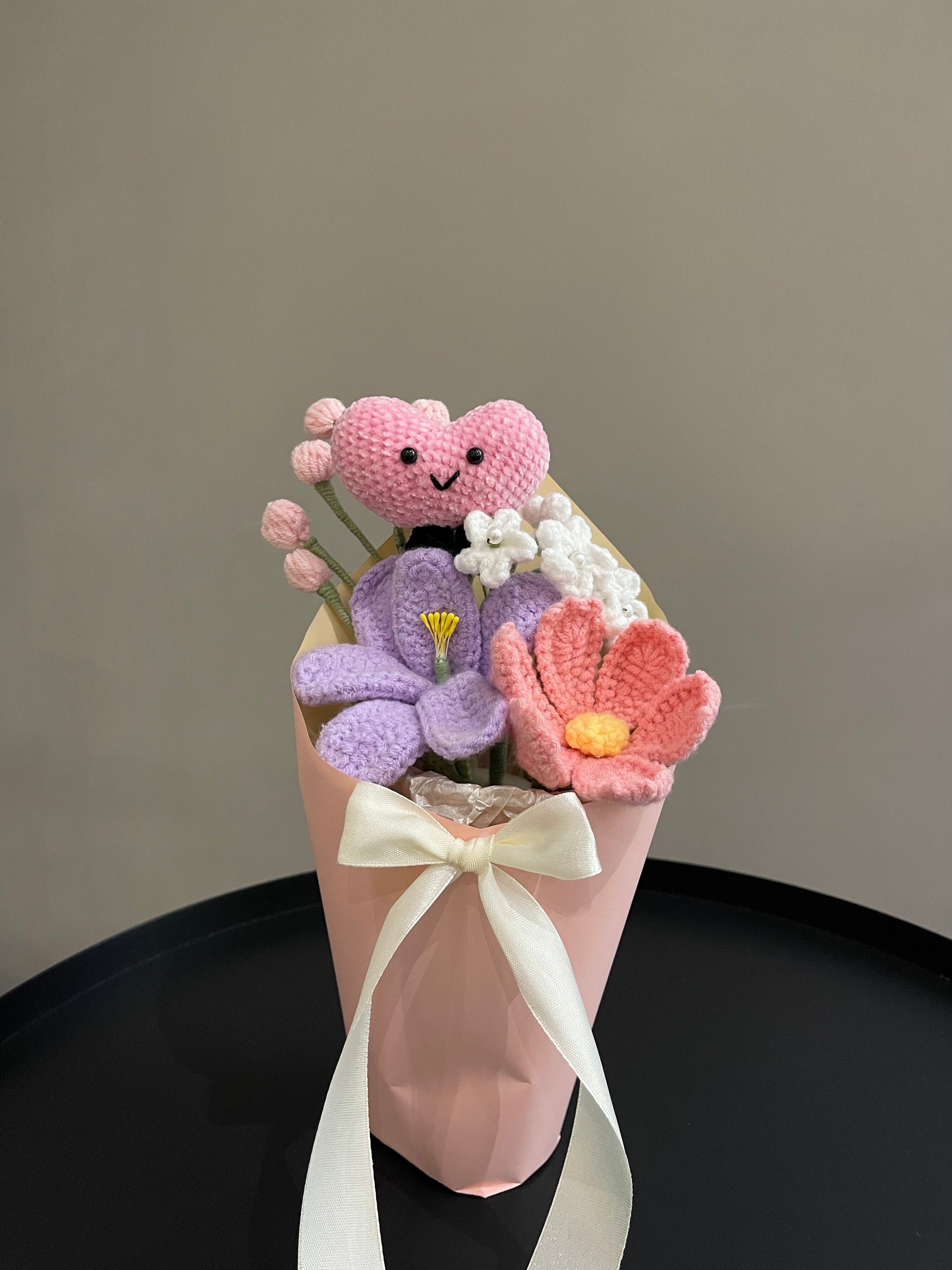 Inspired by the softness of Jellycat, this pastel crochet bouquet cup brings comfort and cuteness.