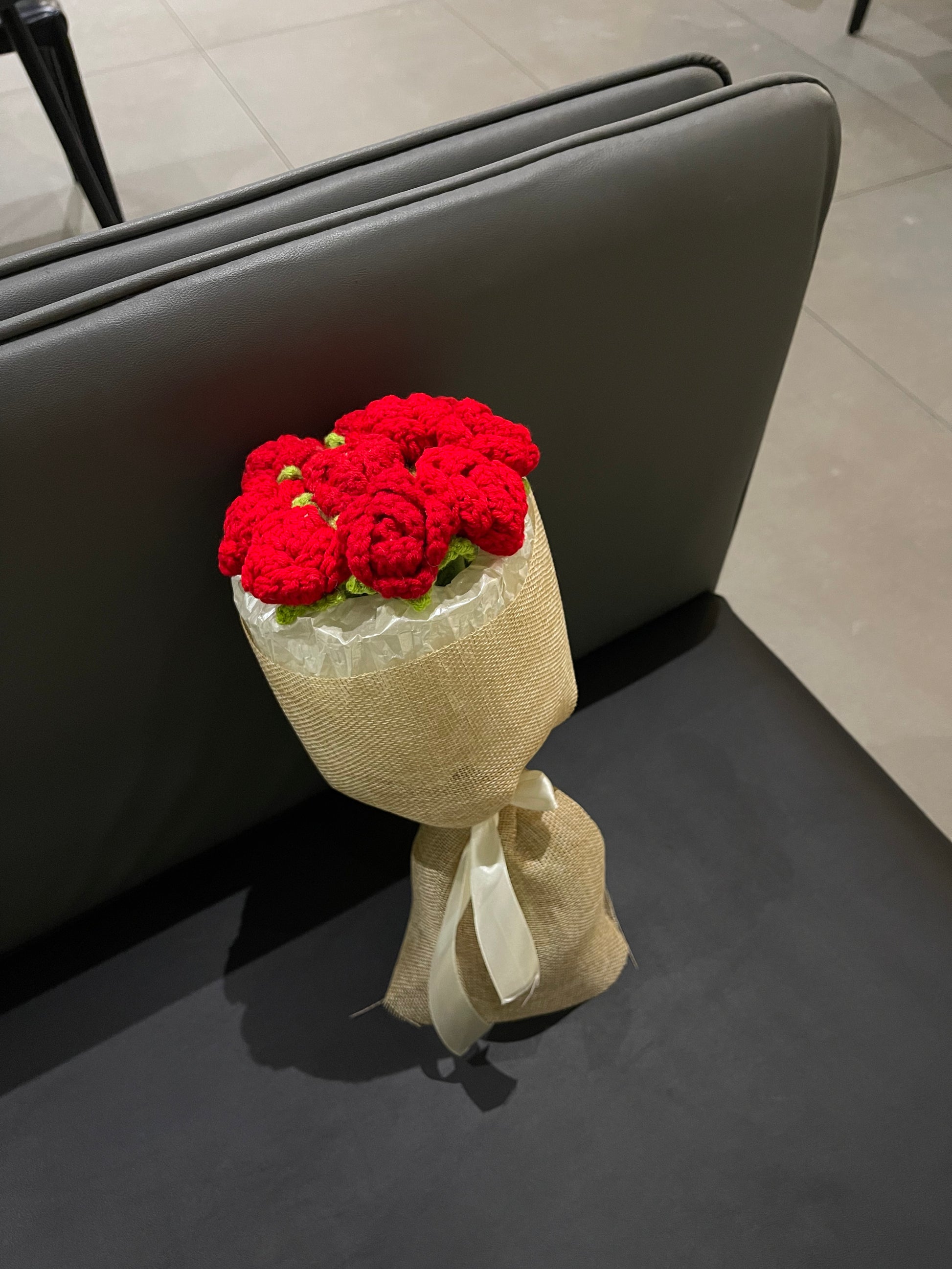 Shower them with love through this bouquet of 10 adorable mini roses. Featuring ten handcrafted mini roses, available in red or pink, each bouquet is wrapped in rustic brown sackcloth paper for a soft, vintage touch.